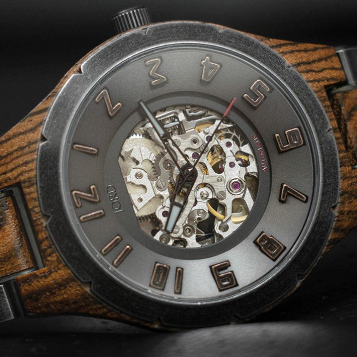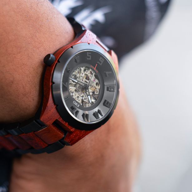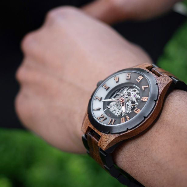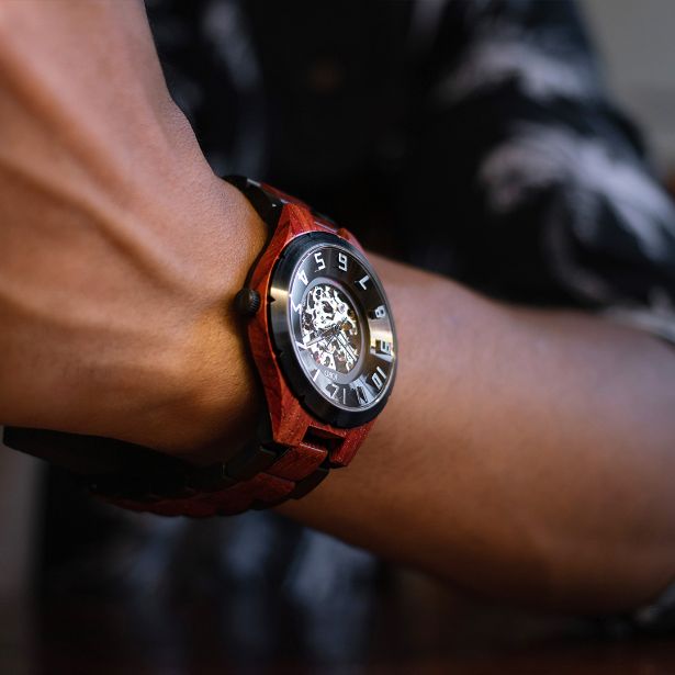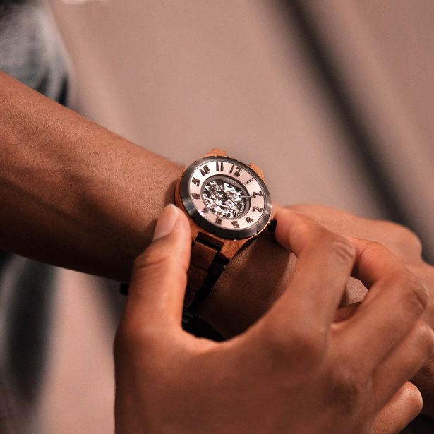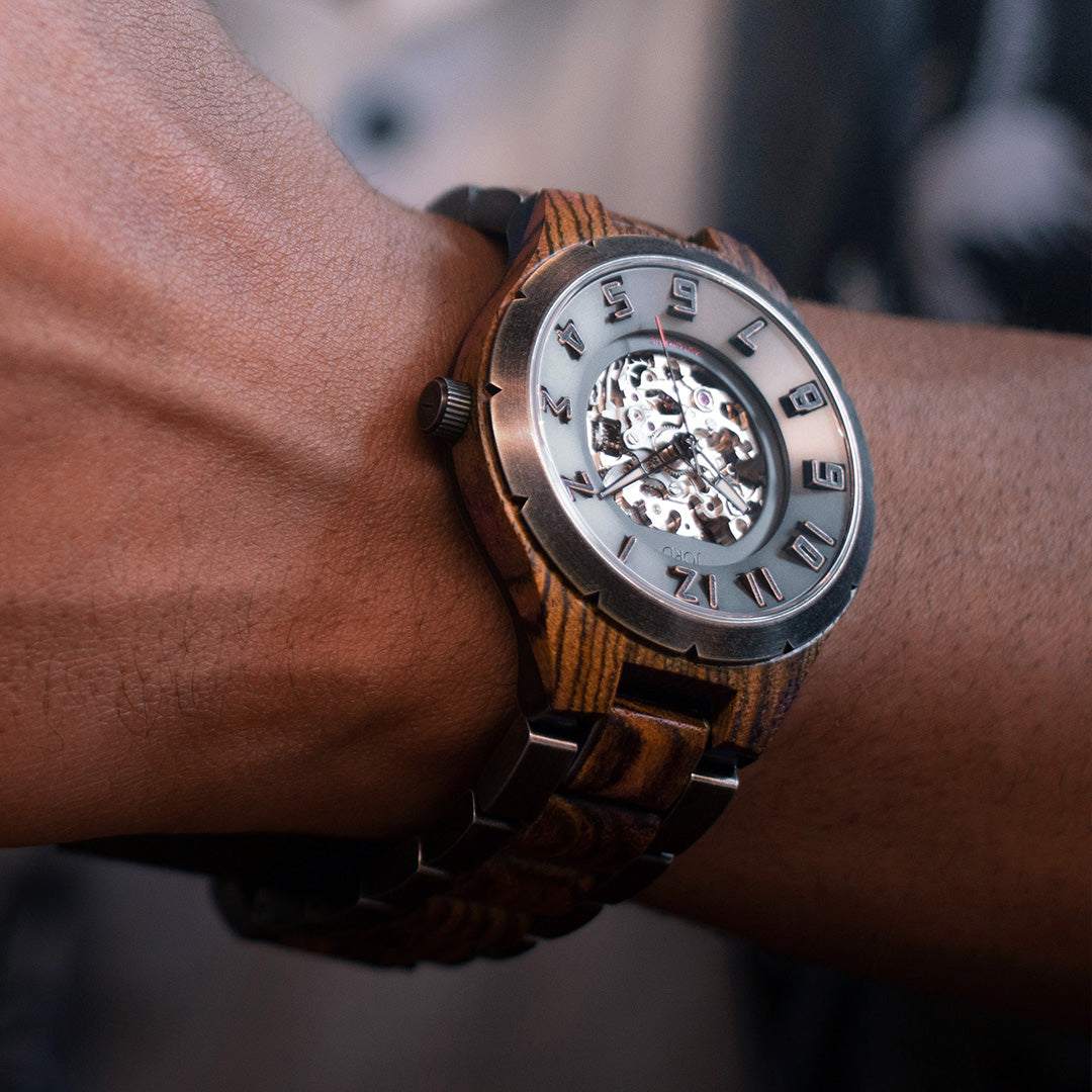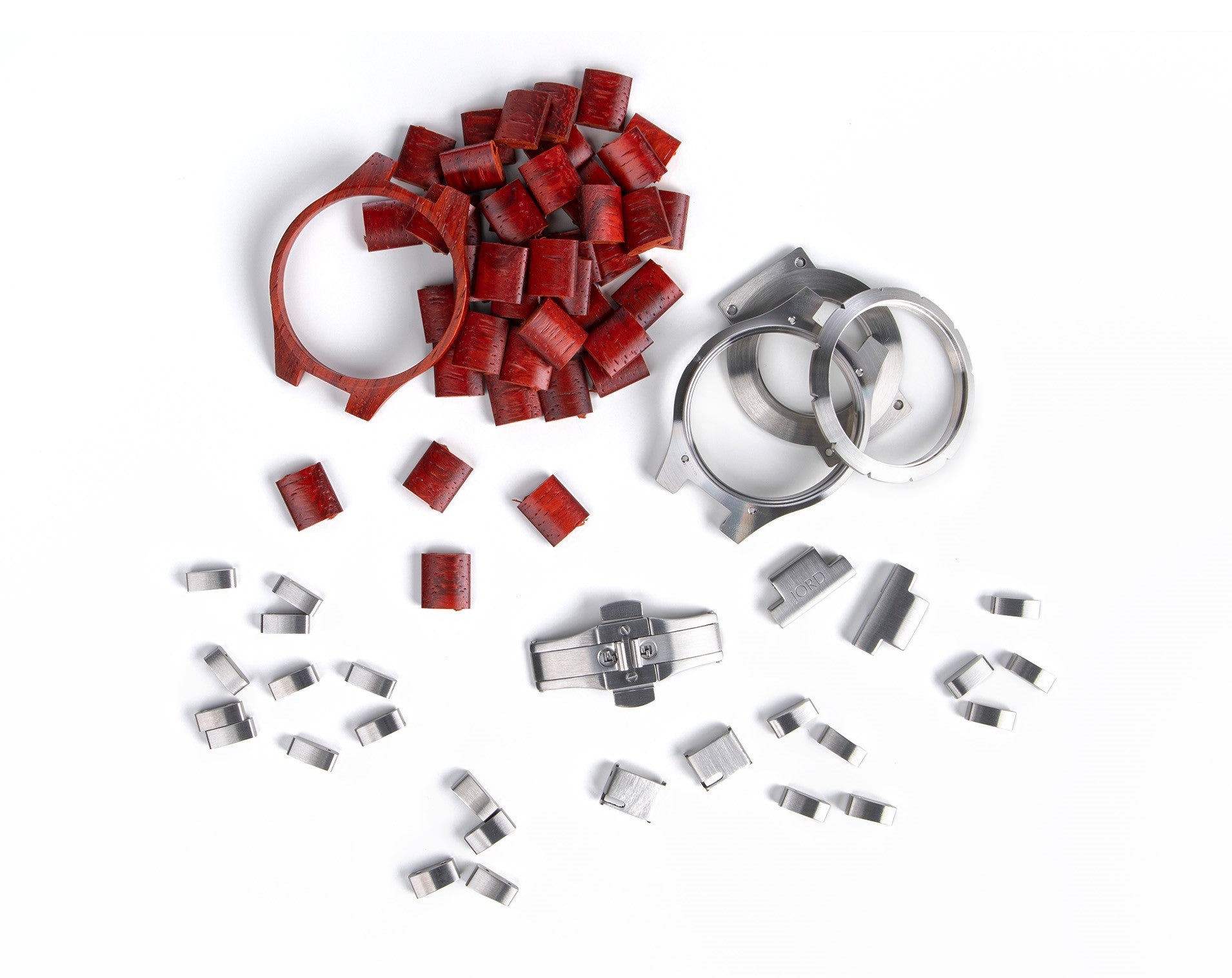 The timing has never been better for this sporty overhaul of our iconic Dover Collection. We’ve increased strength and rigidity with a steelcore™ frame while streamlining the profile thickness to just under 12mm: clean lines with an aerodynamic flow. Watch the sophisticated motion of gears and rotors as the self-winding automatic movement churns under the hood. The signature look of the cambered inner dial has been enlarged while retaining the classic 42mm bezel manifold. Sloped lug ends flow smoothly into a 48-piece, handmade wood & steel band.