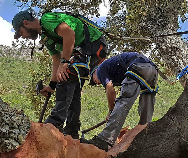 The cork oak is 1 of only 3 trees in the world that can be stripped of its bark without dying. As the bark regrows, it pulls tremendous amounts of carbon dioxide from the air. Harvesting cork actually reduces greenhouse gases. Cork oak trees require no pruning, maintenance, or harmful pesticides.